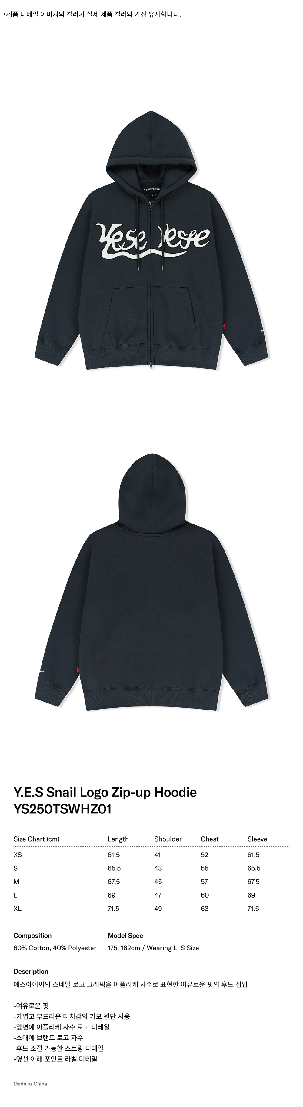 예스아이씨 예스 스네일 로고 집업 후디 차콜