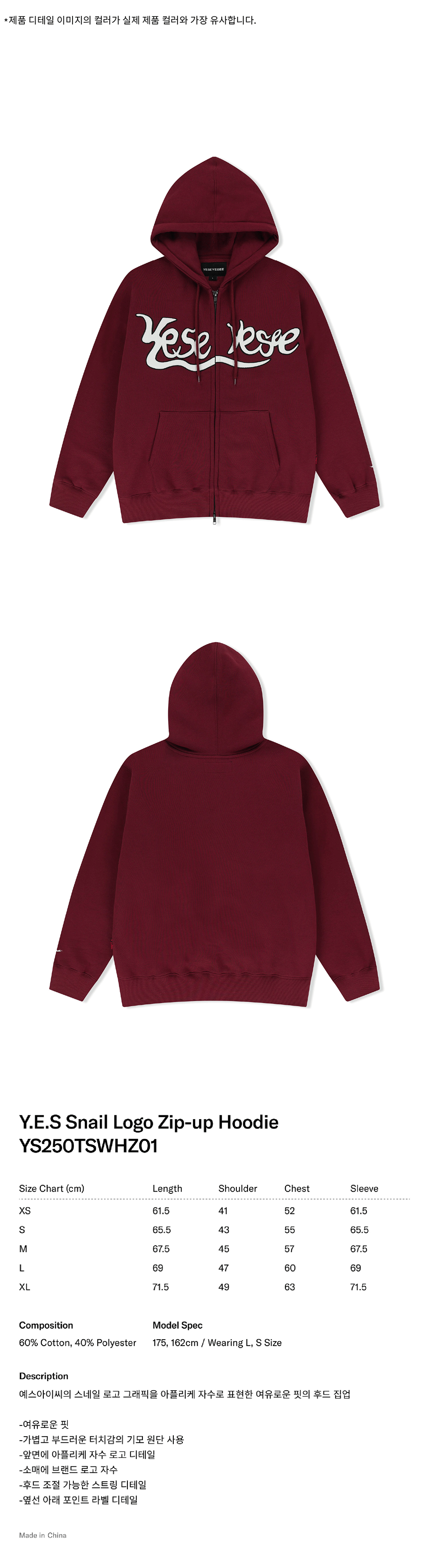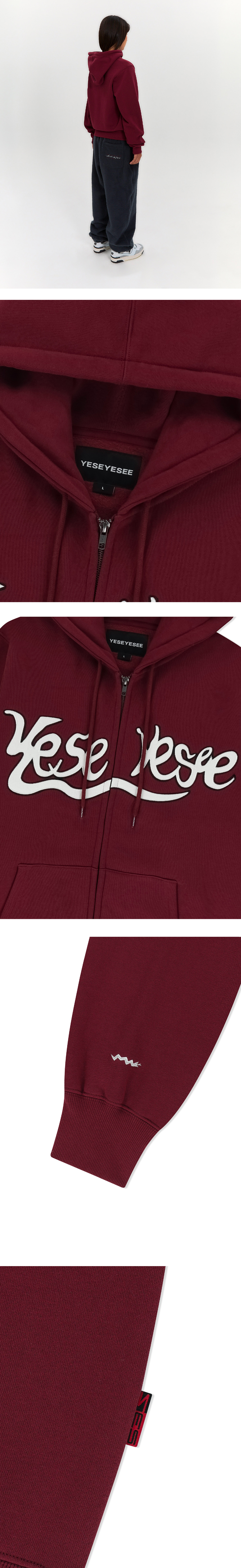 예스아이씨 예스 스네일 로고 집업 후디 버건디