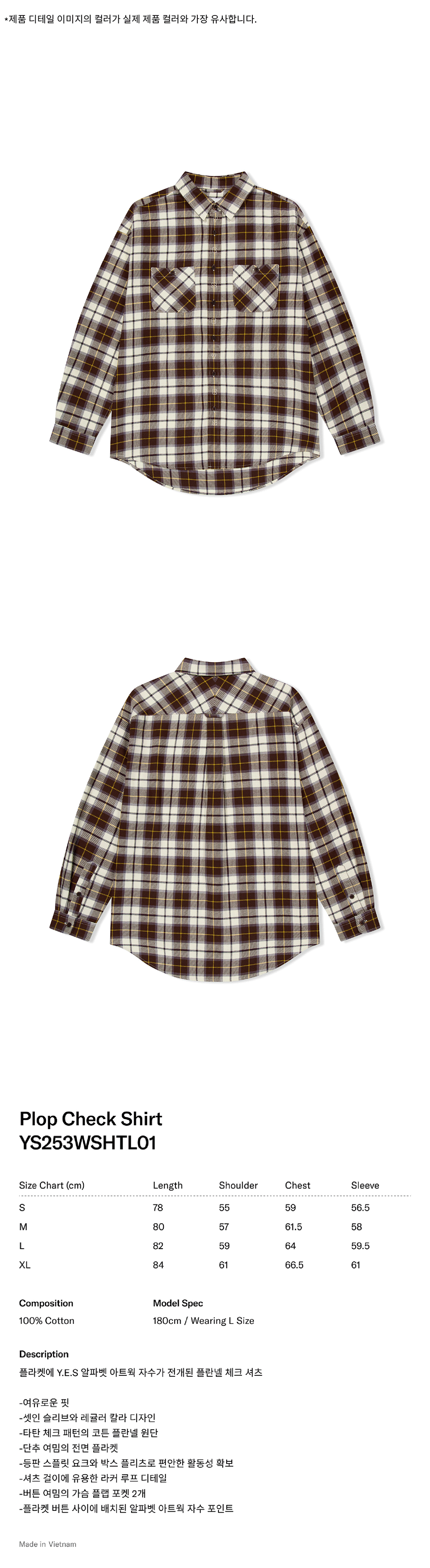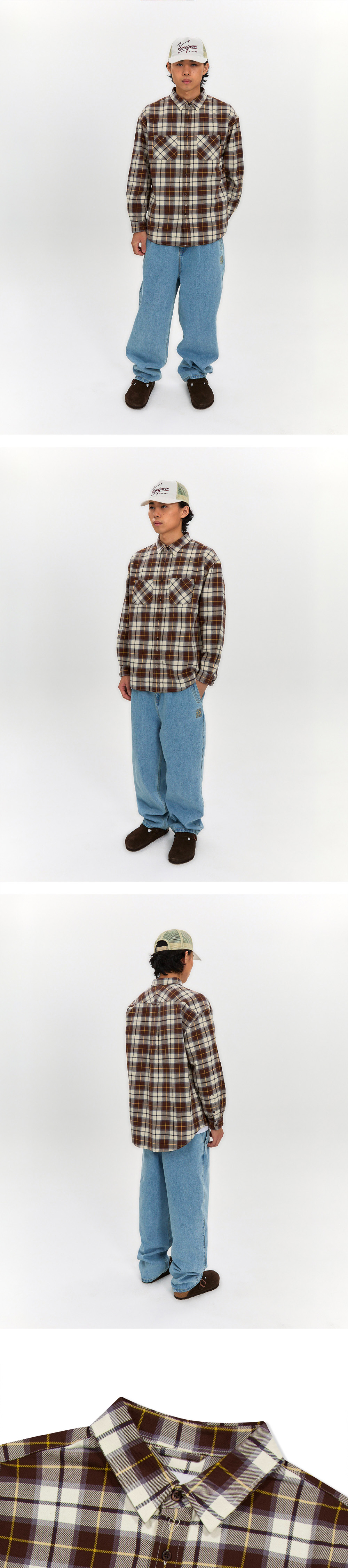 예스아이씨 플롭 체크 셔츠 브라운