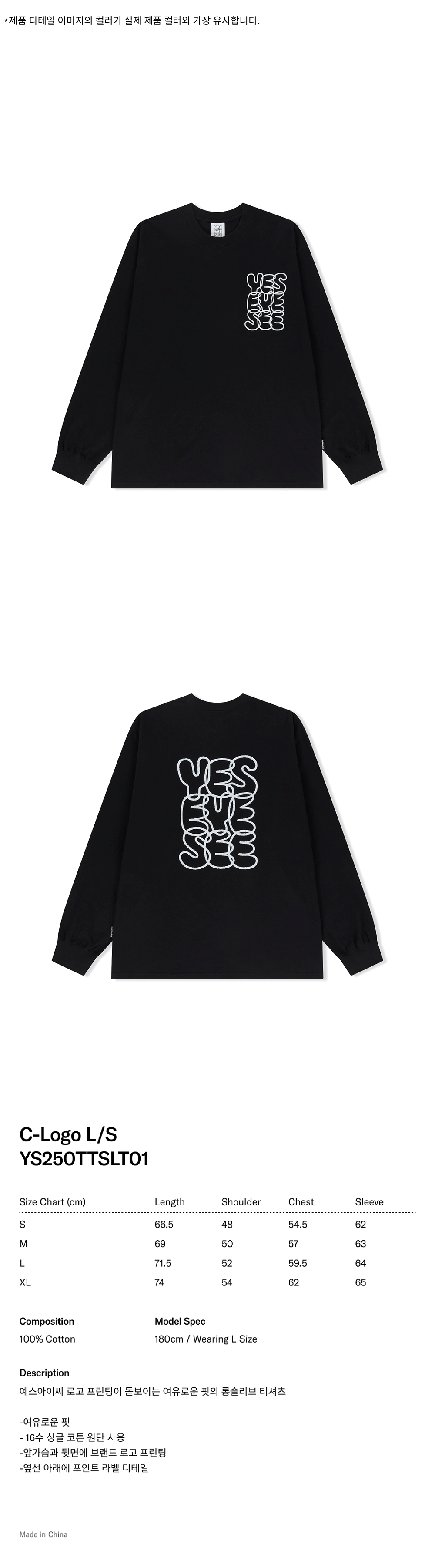 예스아이씨 씨로고 롱슬리브 블랙
