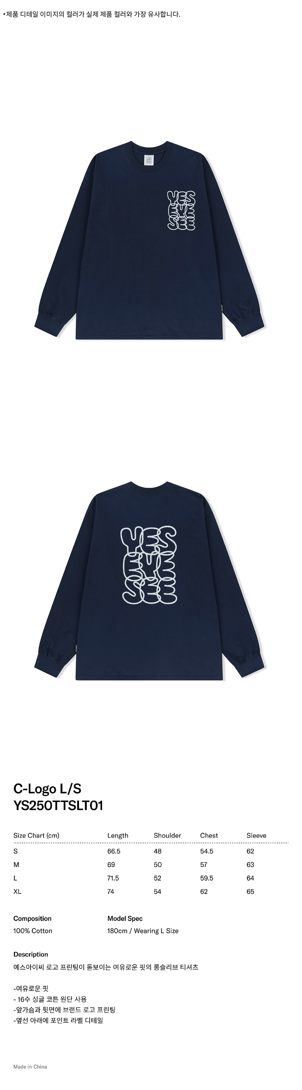 예스아이씨 씨로고 롱슬리브 네이비