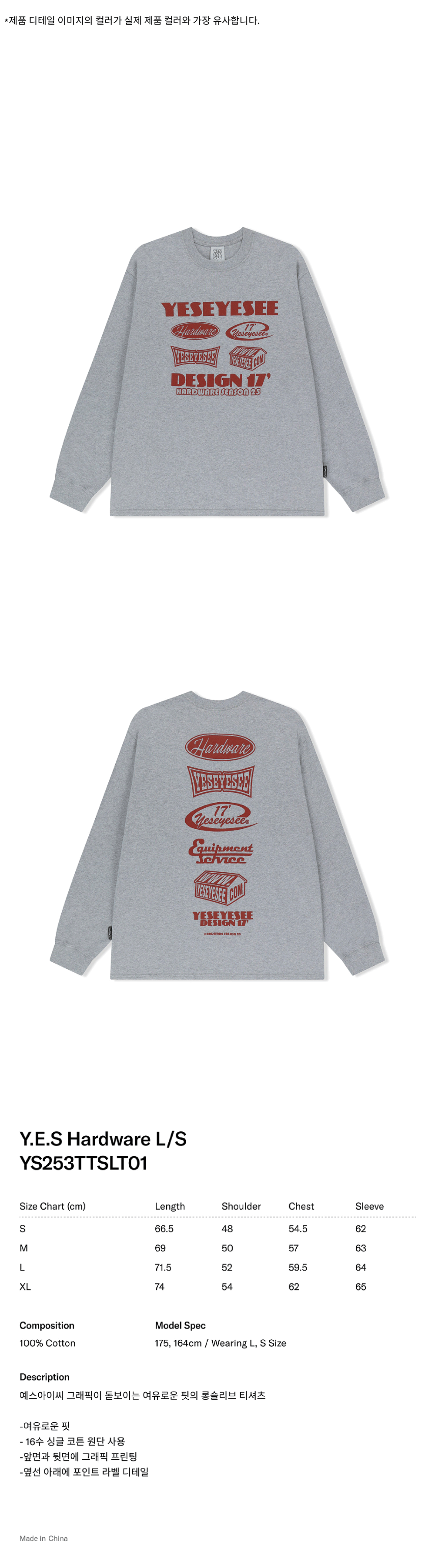 예스아이씨 예스 하드웨어 롱슬리브 그레이