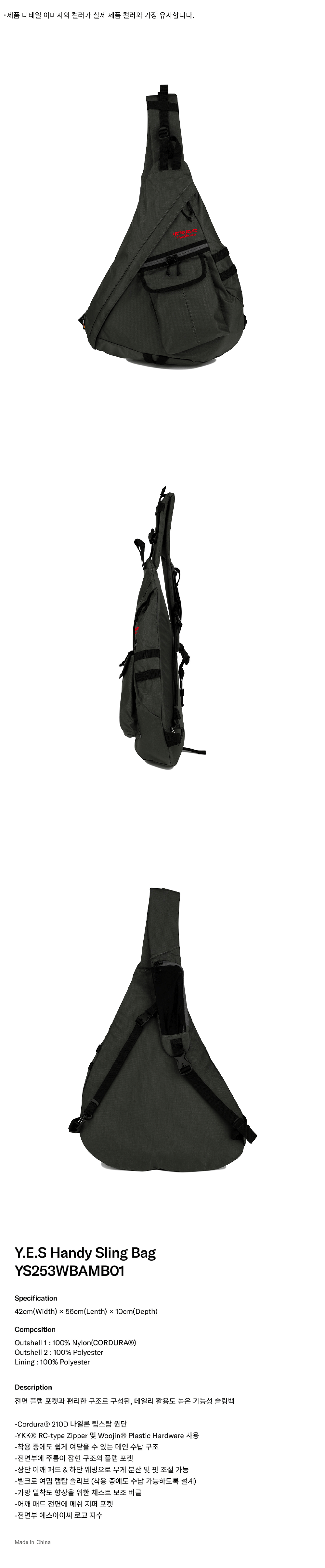 예스아이씨 예스 핸디 슬링 백 차콜