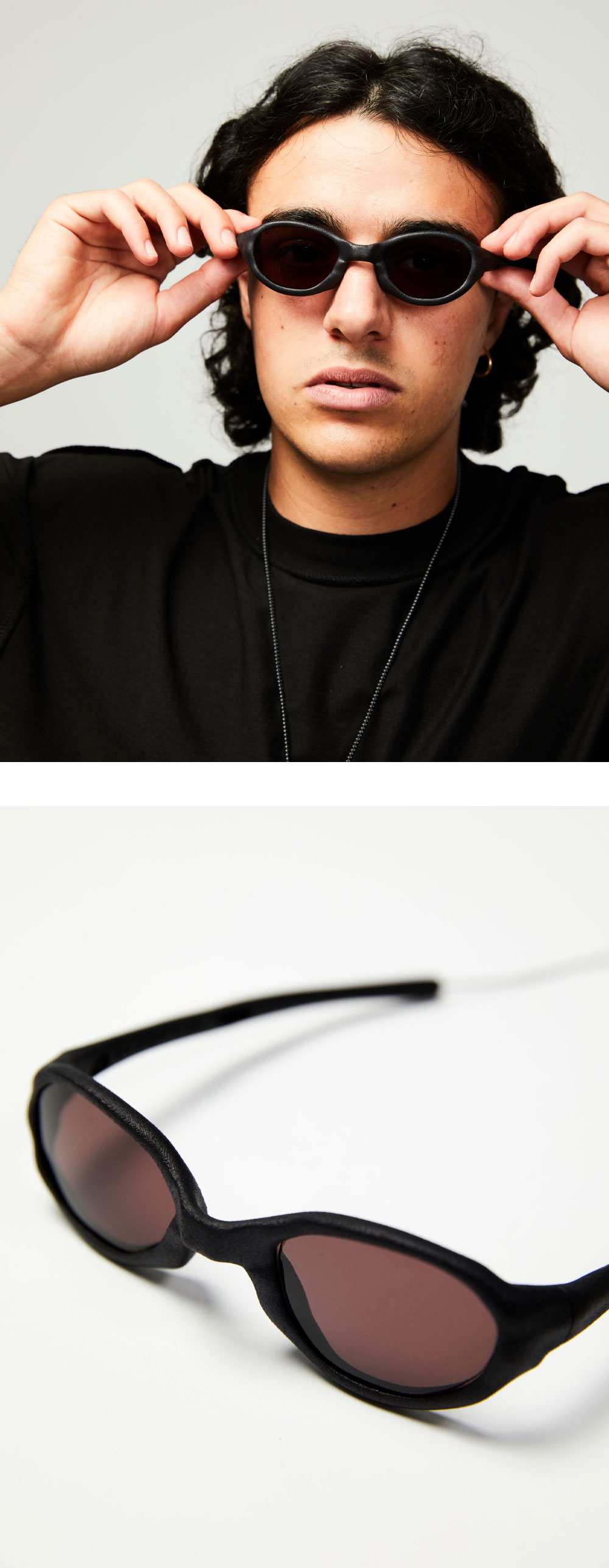 기술과 장인정신이 결합된 독립 아이웨어 브랜드의 철학이 담긴 레이온 버트 x 아비치 웜홀스 선글라스 벌캐닉 블랙입니다. - 레이저 융합된 나일론 파우더로 제작 - 선택적 레이저 소결(SLS)이라는 정밀한 공정을 통해 성형 - 소결 후, 압력을 가해 염색함으로써 색상 견뢰도를 극대화 - 모든 프레임은 수작업으로 마감되어, 각 제품마다 고유의 질감을 가짐 - 렌즈는 Zeiss에서 제작한 CR-39 레진 소재 - 유연하고 가벼우며, 무게는 고작 22.8g(스트랩 포함 시 24g) - 토론토의 Abicsi 스튜디오에서 수작업 제작 및 프린트된 벨크로 파우치 제공