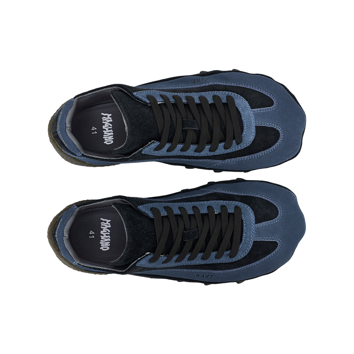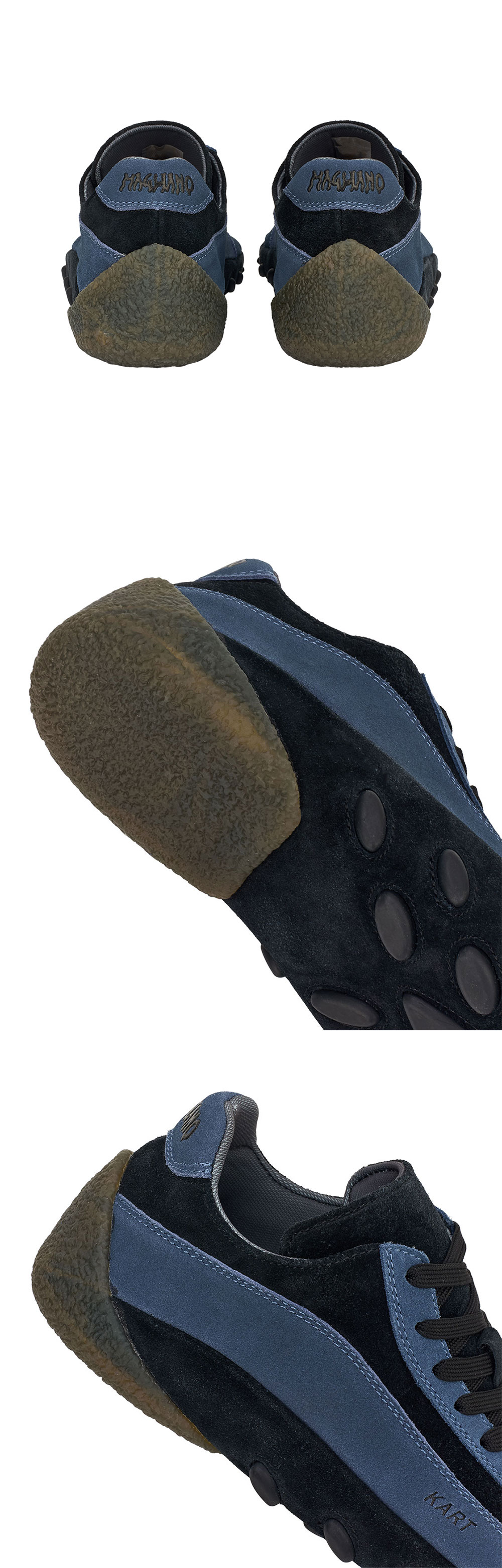 일상과 아웃도어 모두 어울리는 감각적인 디자인의 슈즈, 마리아노 카트 블루 슈즈입니다. - 블랙과 네이비 컬러 조합으로 감각적인 스타일 연출 - 독특한 아웃솔 디테일로 개성 있는 디자인 완성 - 튼튼한 힐 구조로 안정적인 착화감 제공 - 스웨이드와 패브릭 소재의 조화로 고급스러운 질감 구현 - 슬림한 실루엣이 세련되고 날렵한 분위기 강조 - 쿠셔닝 있는 미드솔로 장시간 착화에도 편안함 유지 - 러버 아웃솔이 뛰어난 내구성과 접지력 제공 - 도시적인 무드와 아웃도어 감성을 동시에 갖춘 다용도 디자인 - KART 로고 포인트로 브랜드 아이덴티티를 강조
