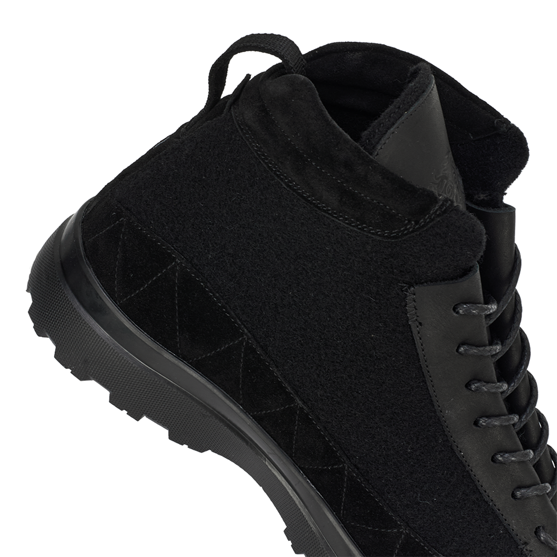 블랙 톤으로 완성된 하이컷 실루엣이 깔끔하고 다양한 스타일에 어울리는 란라 흐렛 슈즈 블랙입니다. - 발목을 감싸는 하이컷 실루엣이 안정적인 착화감을 제공 - 블랙 스웨이드와 텍스타일의 매트한 질감이 차분한 분위기 연출 - 견고한 러버 아웃솔로 내구성과 접지력을 강화 - 전체 블랙 톤이 모던하면서도 절제된 멋을 완성 - 힐 구조가 단단히 지지해 장시간 활동에도 편안함 유지 - 도심 속 캐주얼룩과 아웃도어 웨어 모두에 자연스럽게 어울림 - 계절감을 타지 않는 디자인으로 활용도가 높음 - 담백하지만 강렬한 존재감을 갖춘 블랙 하이컷 슈즈