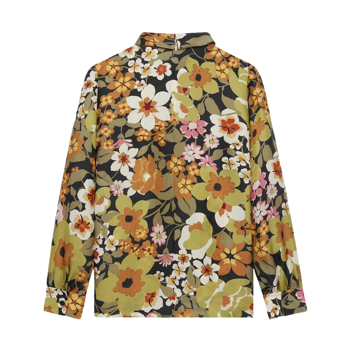 (W) Celine Lavalliere Blouse with Bow in Silk Organza Black Khaki