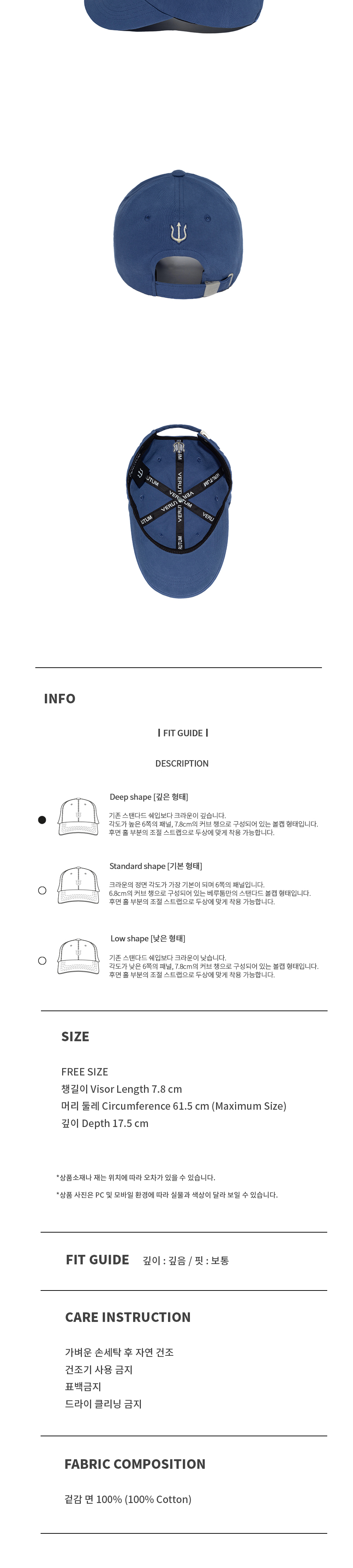 | 챙길이(Visor Length) | 머리 둘레(Circumference) | 깊이(Depth) |