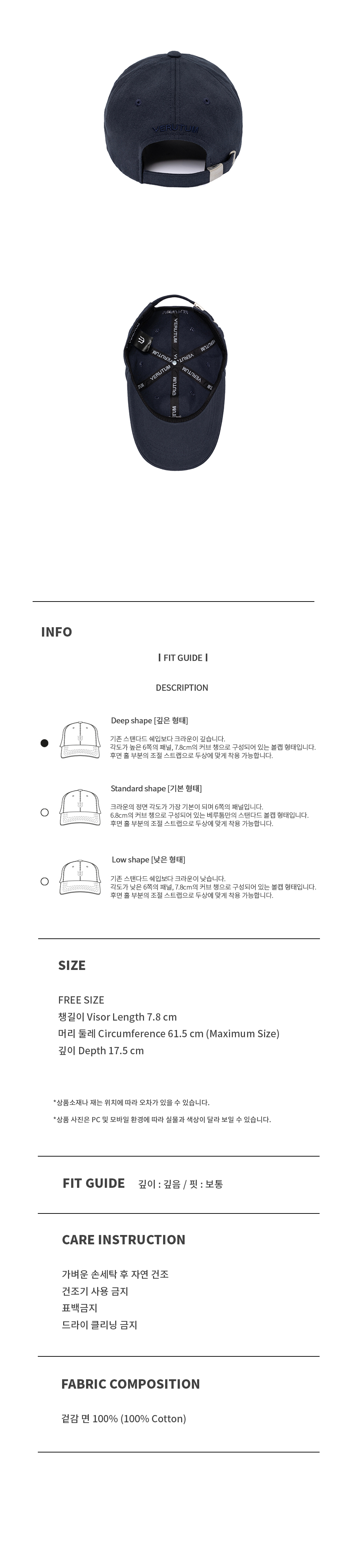 | 챙길이(Visor Length) | 머리 둘레(Circumference) | 깊이(Depth) |
