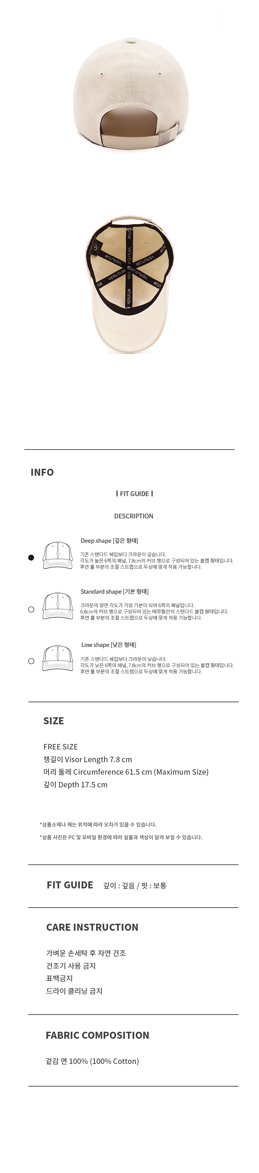 | 챙길이(Visor Length) | 머리 둘레(Circumference) | 깊이(Depth) |