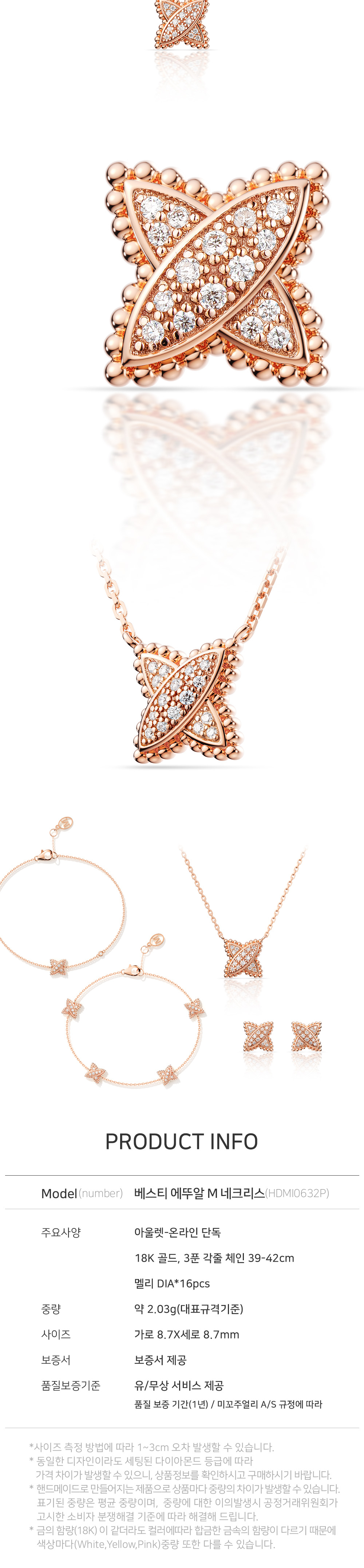 미꼬 온라인 단독 베스티 에뚜알 M 다이아몬드 네크리스 핑크 골드