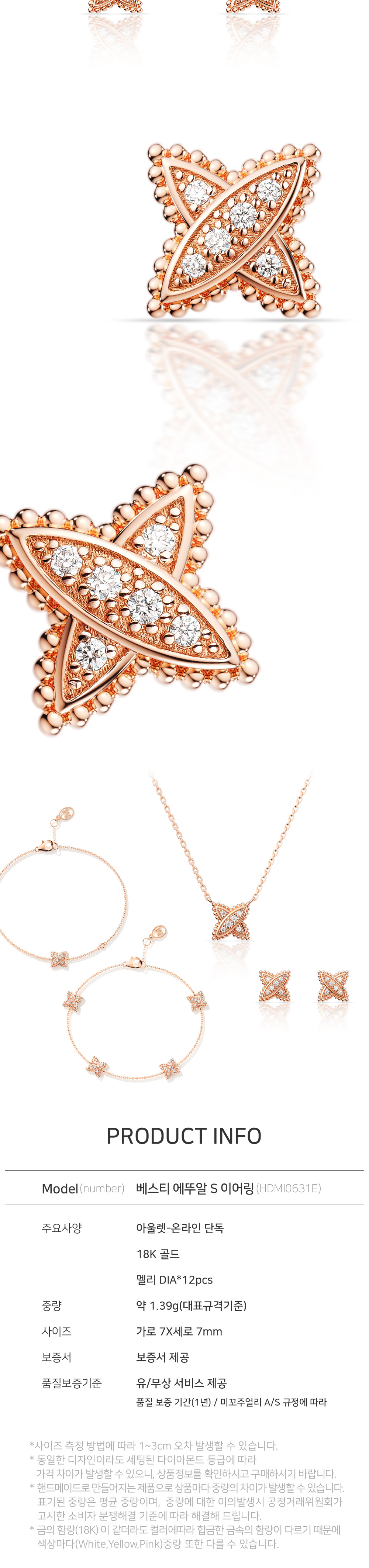 미꼬 온라인 단독 베스티 에뚜알 S 다이아몬드 이어링 핑크 골드