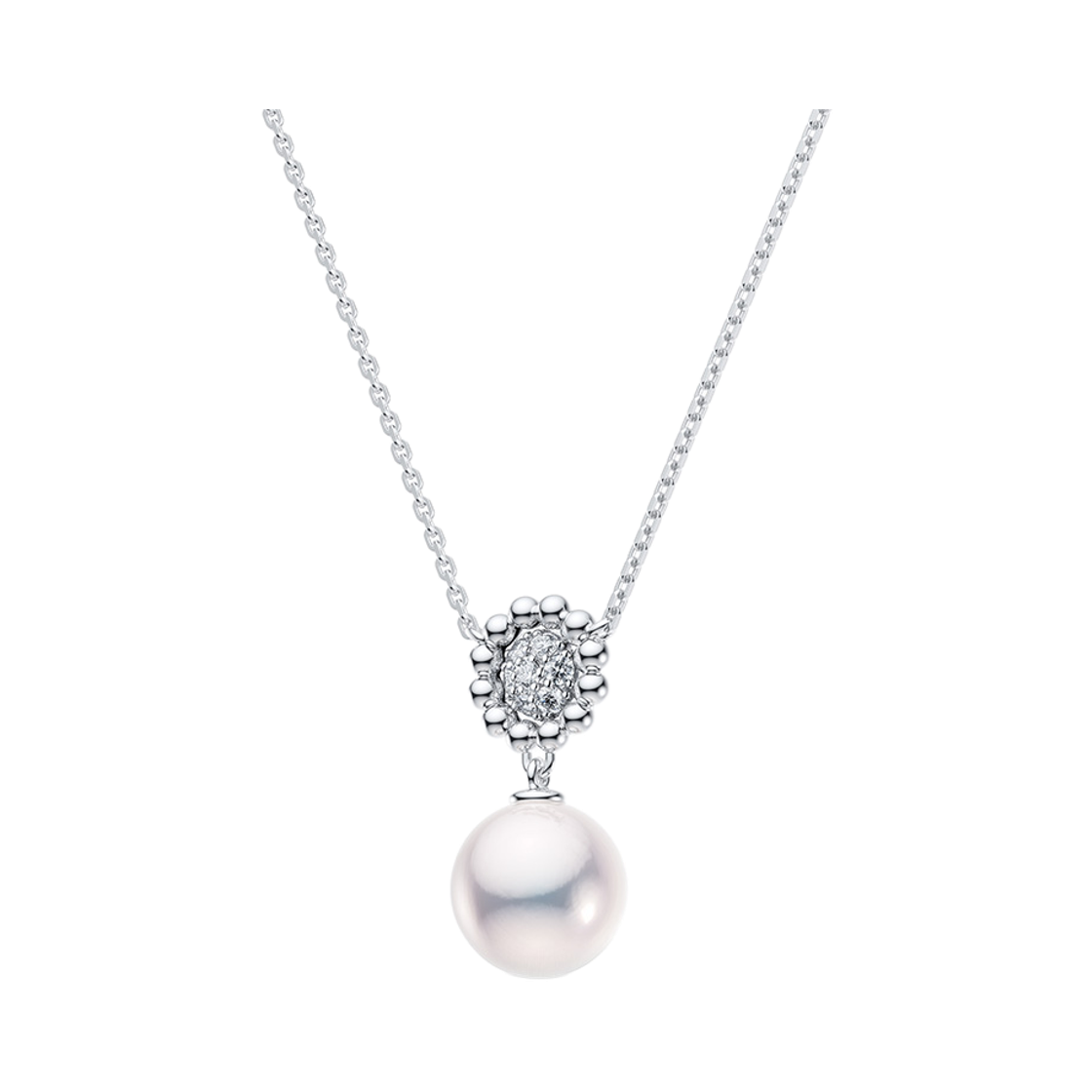 Miko Online Exclusive Vasty Pom Pom Drop Diamond Akoya Pearl Necklace White Gold