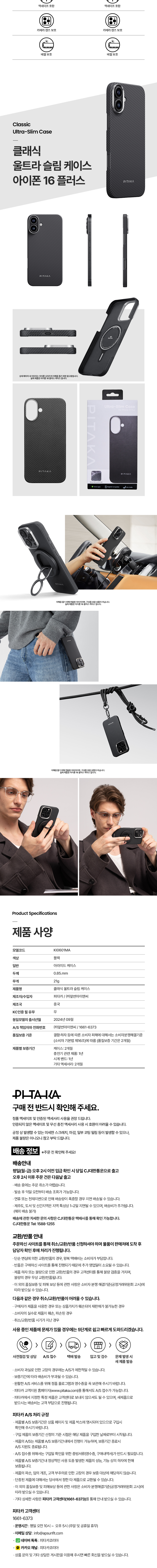 피타카 아이폰 16 플러스 울트라 슬림 케이스 블랙
