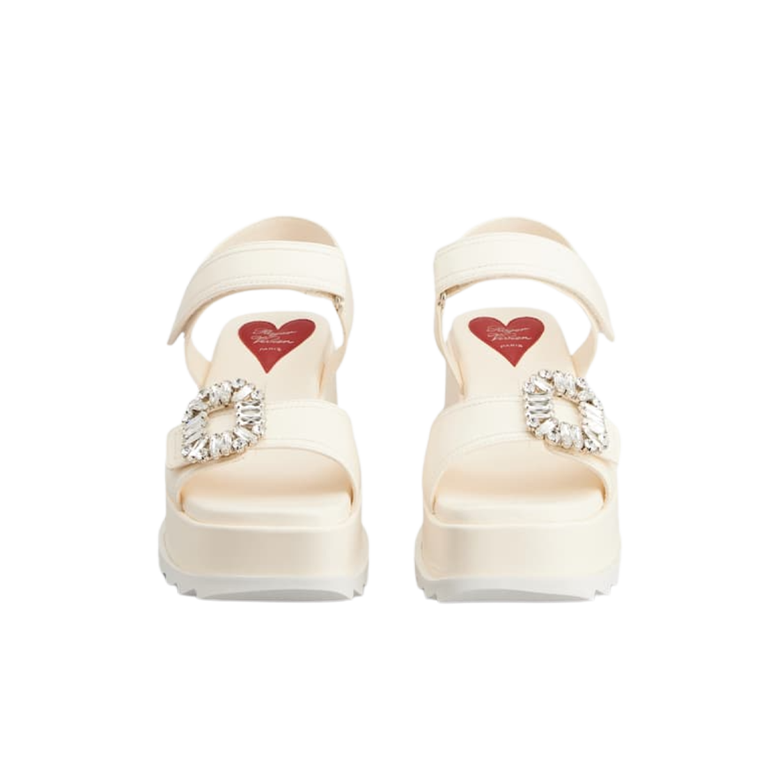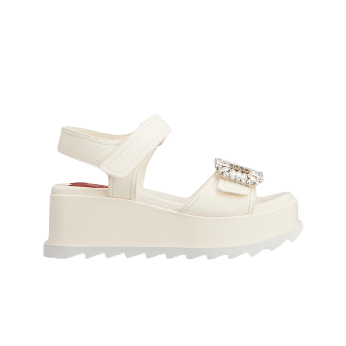 (W) Roger Vivier Slidy Viv Wedge Sandals in Leather Off White