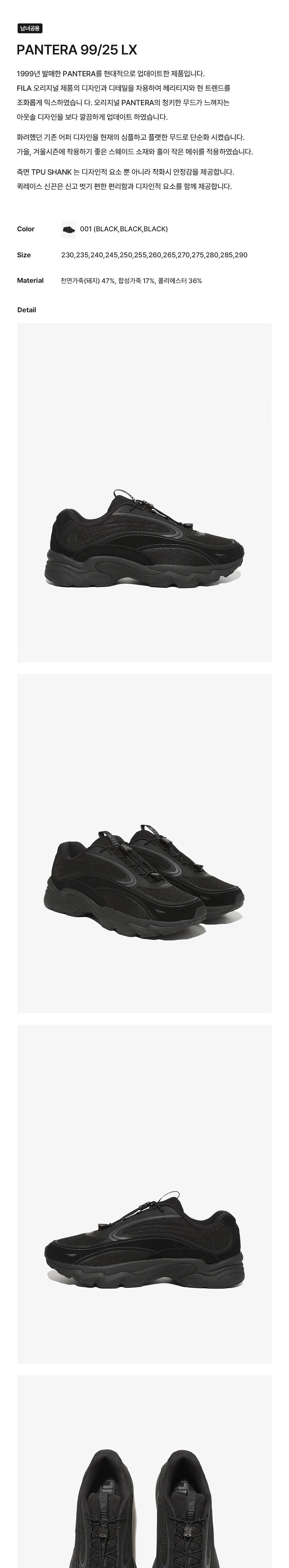 [6% 적립] 휠라 판테라 99/25 LX 블랙