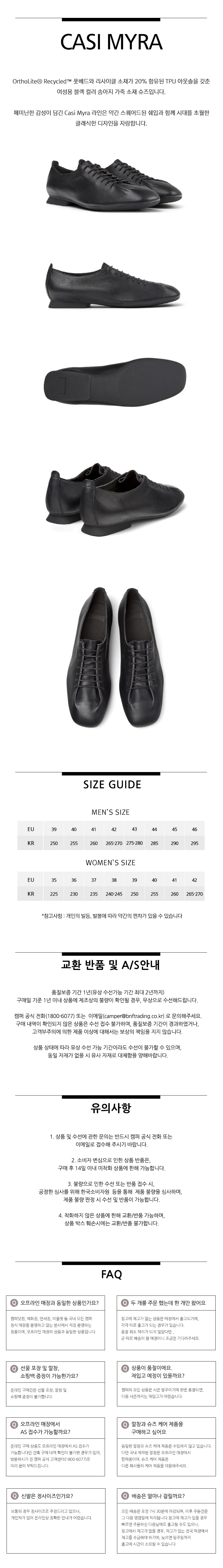 캠퍼 여성 카시미라 플랫슈즈 블랙