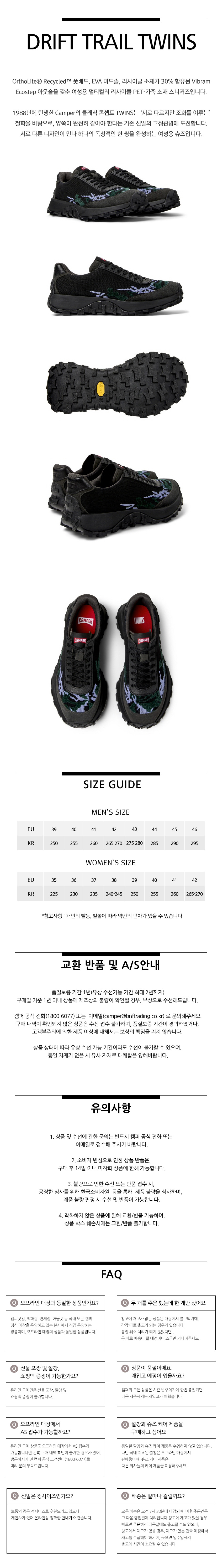 캠퍼 여성 드리프트 트레일 스니커즈 블랙