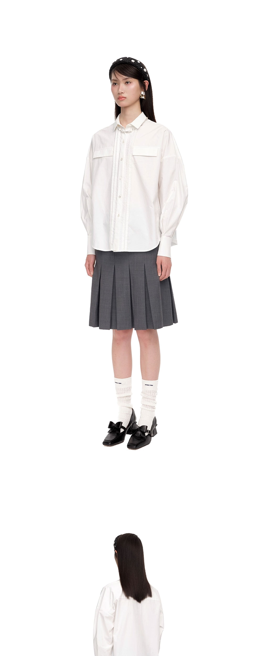 슈슈통 우먼 보우 웨이스트 플리츠 스커트 그레이 - 25FW