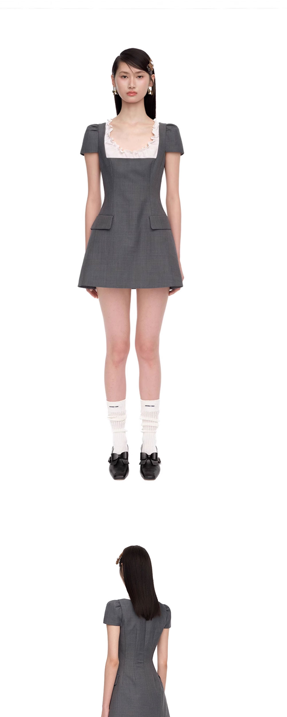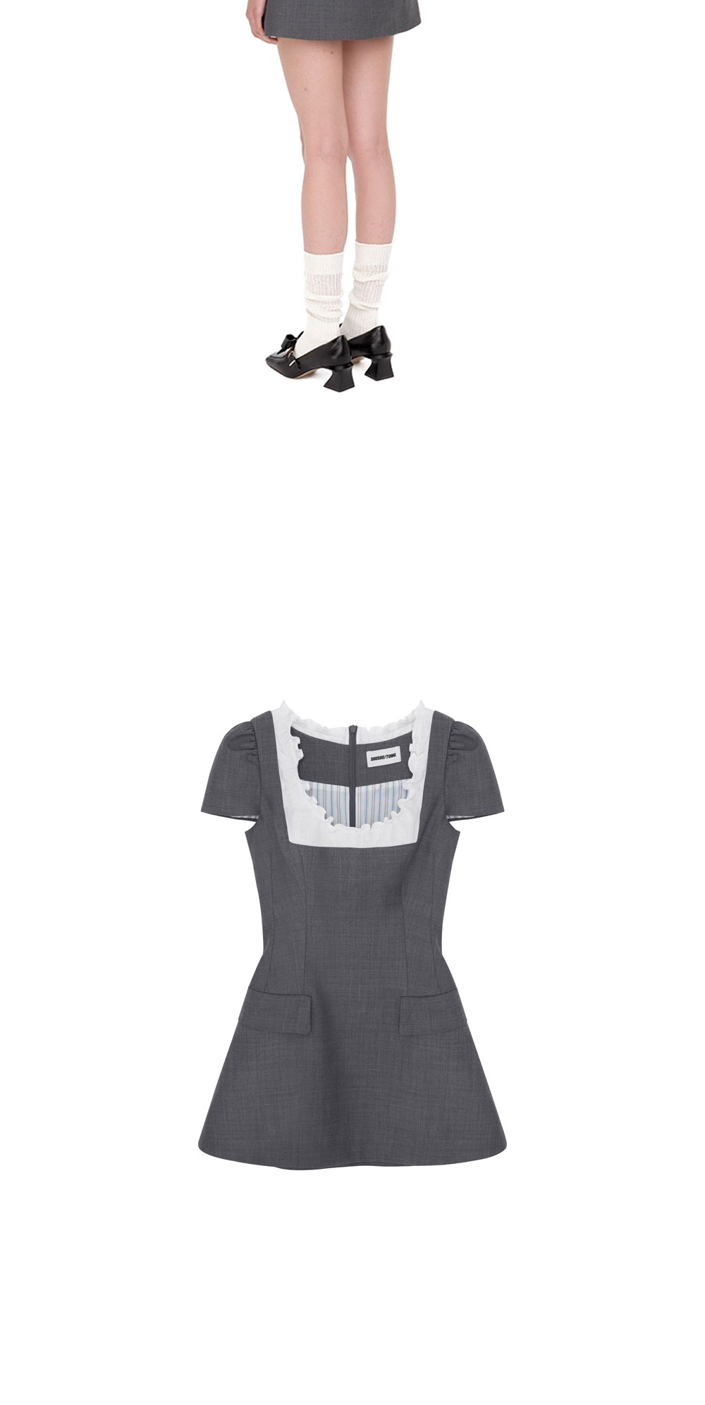 슈슈통 우먼 스캘롭 숏 슬리브 드레스 그레이 - 25FW