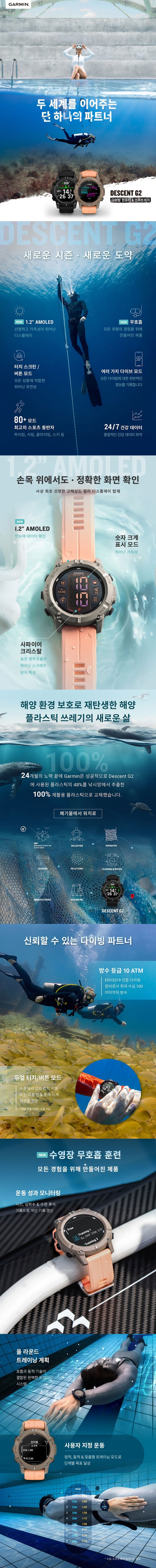 [10% 적립] 가민 디센트 G2 다이빙컴퓨터 다이버시계 팔로마 쉘핑크