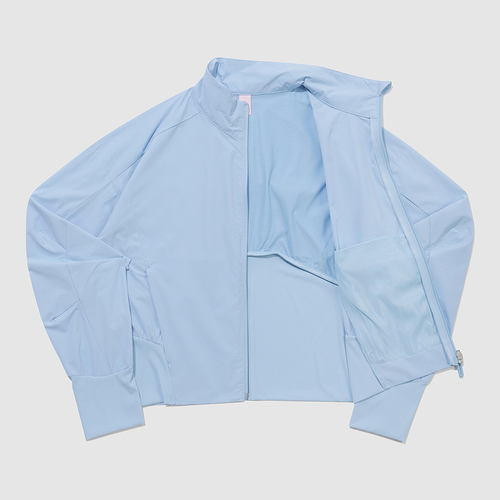 르꼬끄 스포르티브 여성 루즈핏 우븐 하이넥 홑겹 자켓 - 블루(QQ322OJK71)