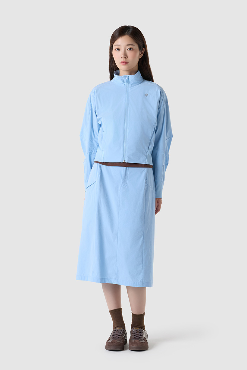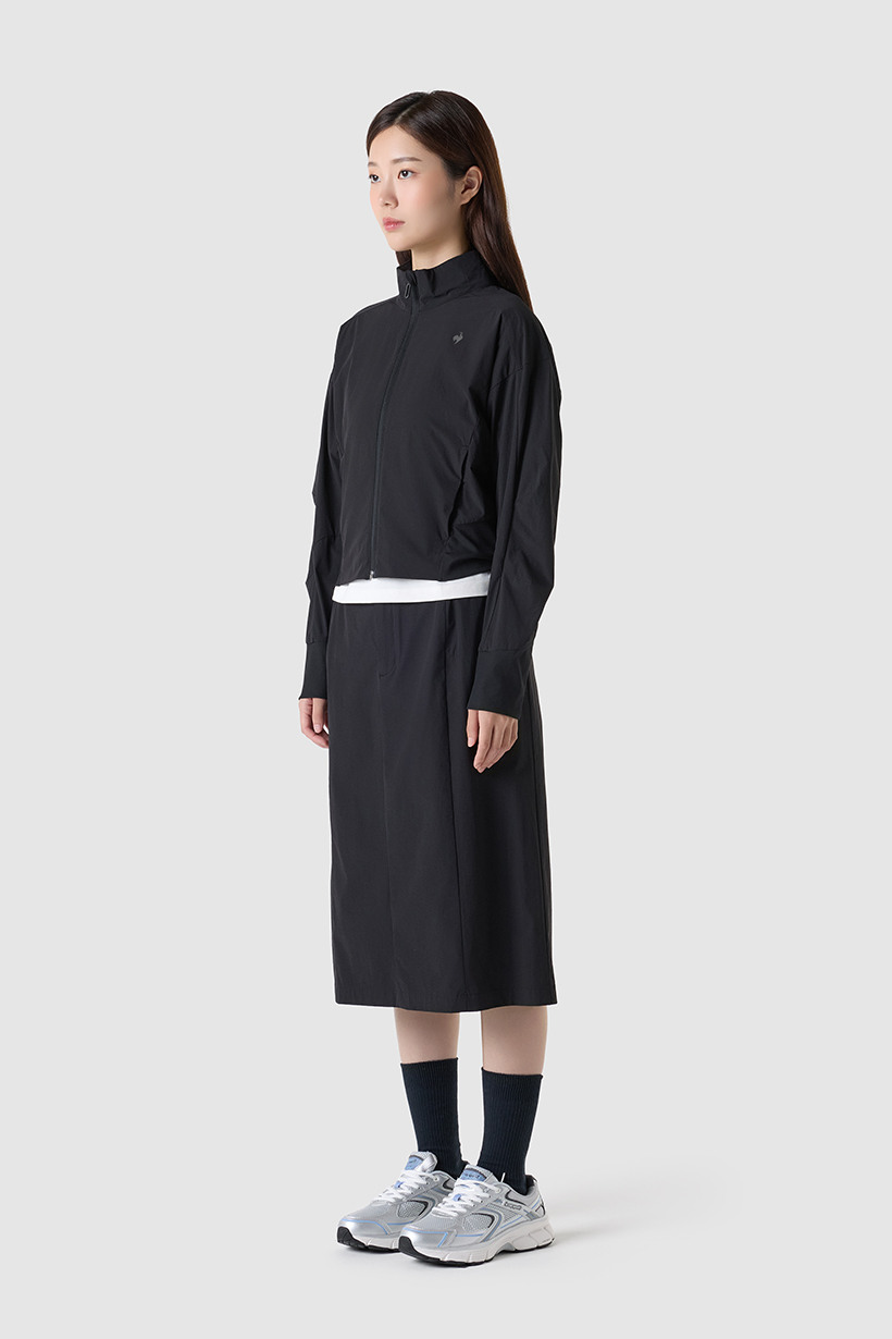 르꼬끄 스포르티브 여성 레귤러핏 우븐 미디기장 스커트 - 블랙(QQ322OSK71)