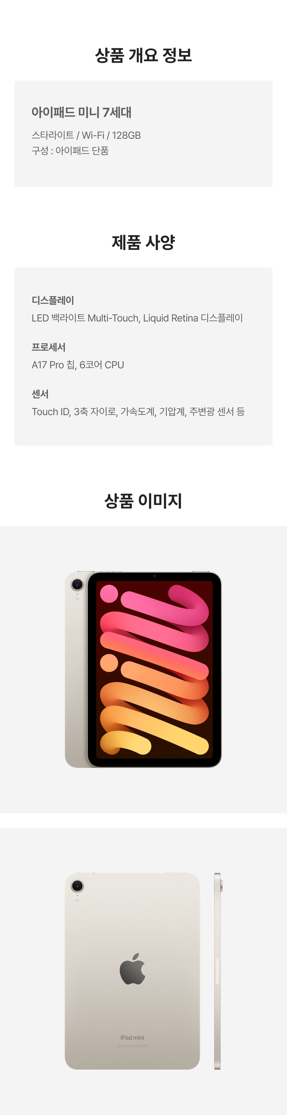 [S등급] 리퍼비시 아이패드 미니 7세대 wifi A17 Pro 128기가 스타라이트