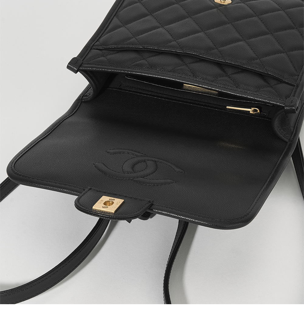 샤넬 스몰 백팩 그레인드 카프스킨 & 골드 메탈 블랙