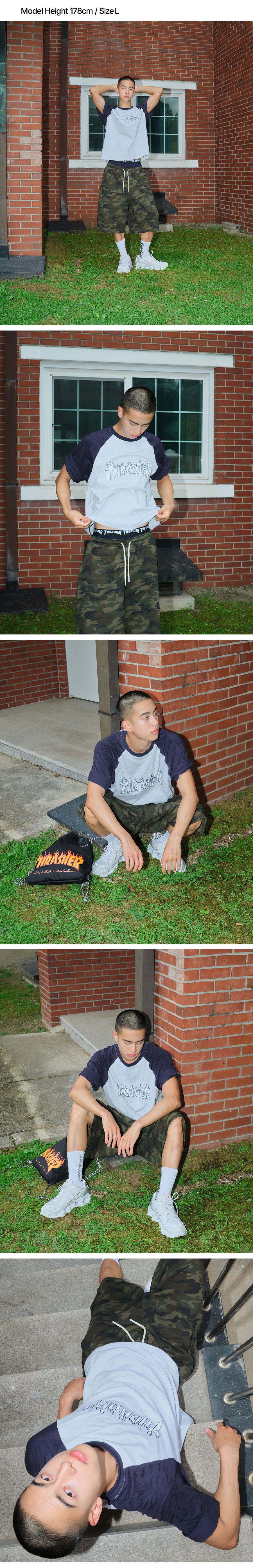 트레셔 플레임 레글런 반팔 티셔츠 네이비