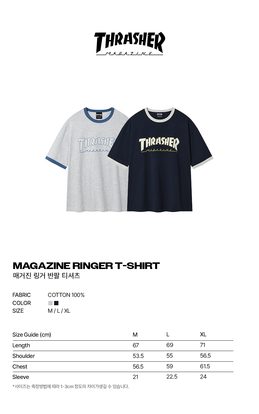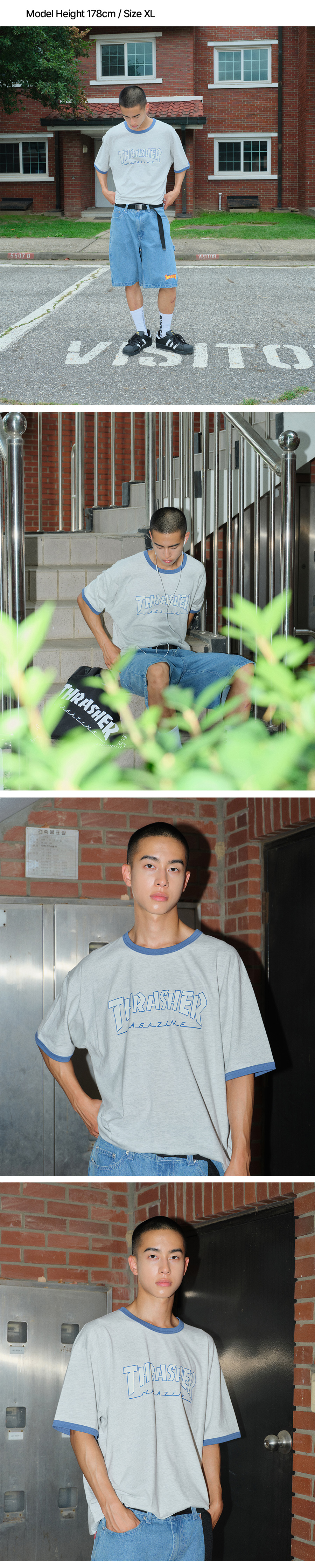 트레셔 매거진 링거 반팔 티셔츠 라이트 그레이