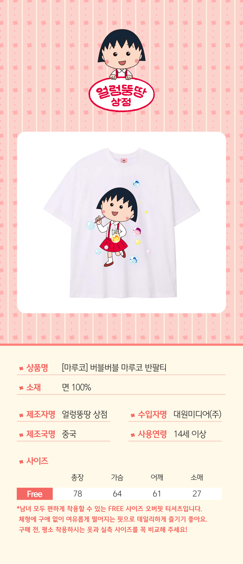 얼렁뚱땅 상점 버블버블 마루코 반팔티