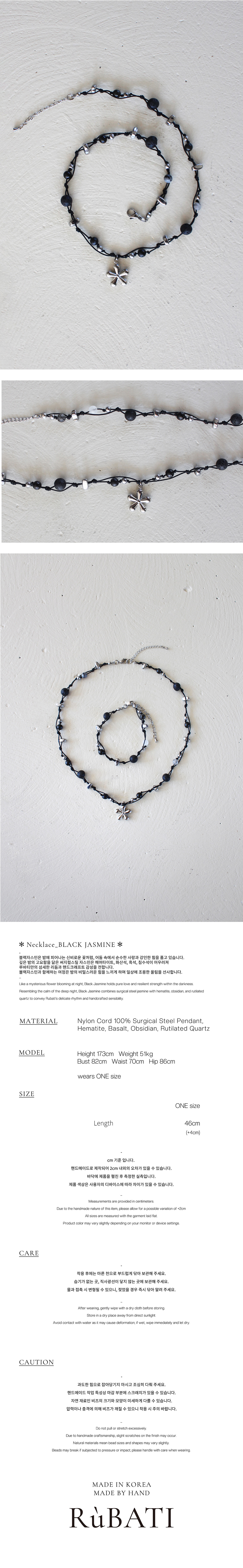 루바티 블랙 자스민 써지컬 스틸 네크리스
