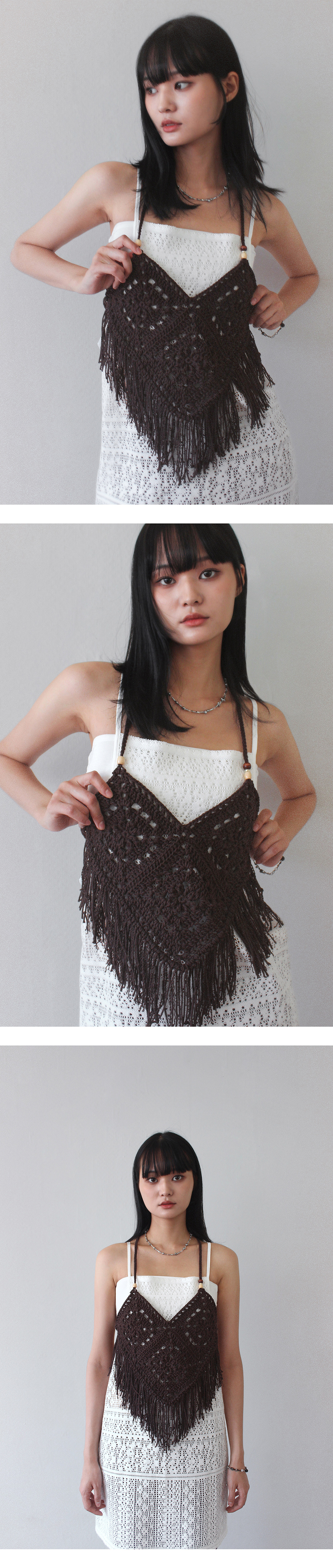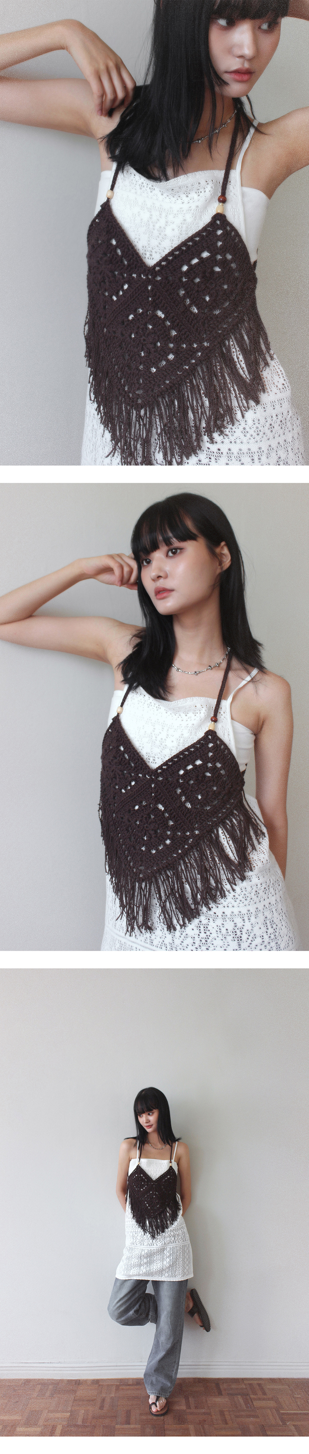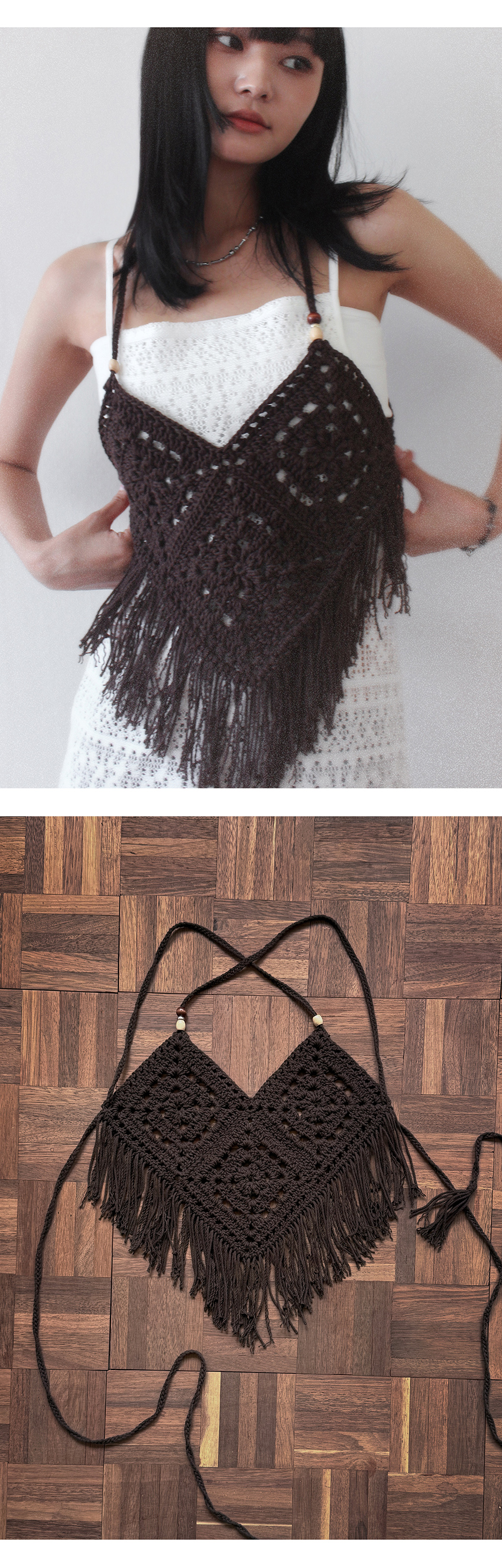루바티 핸드메이드 크로쉐 태슬 니트 베스트 브라운