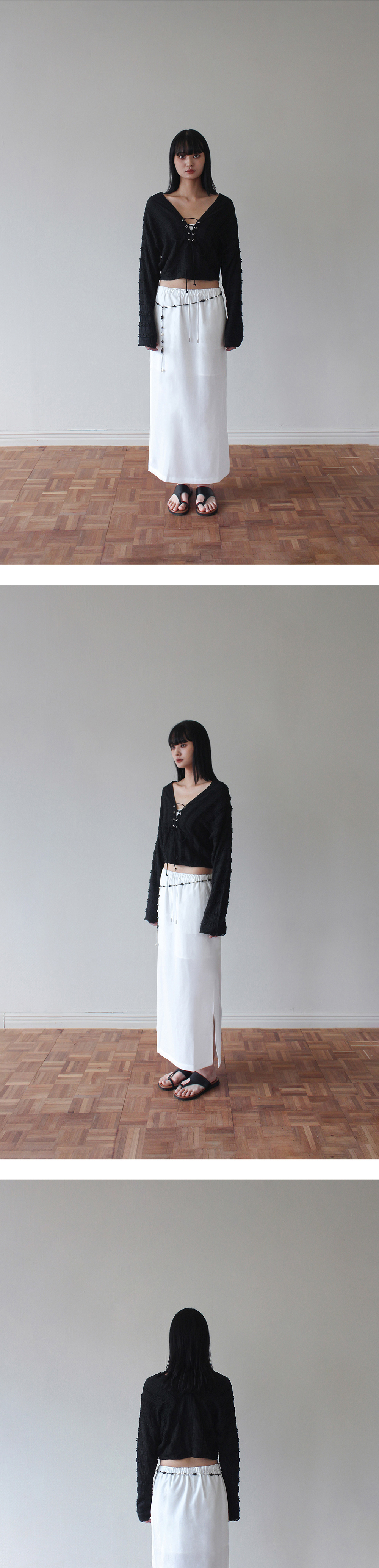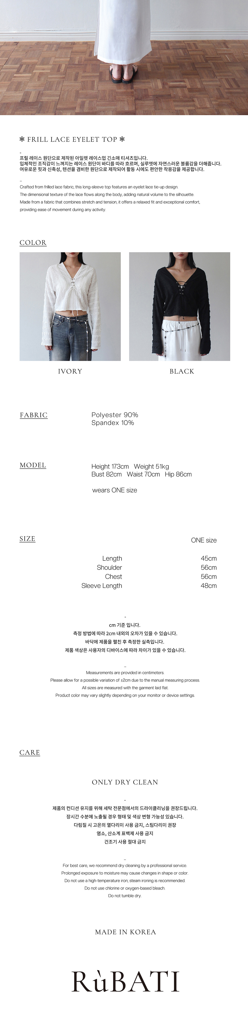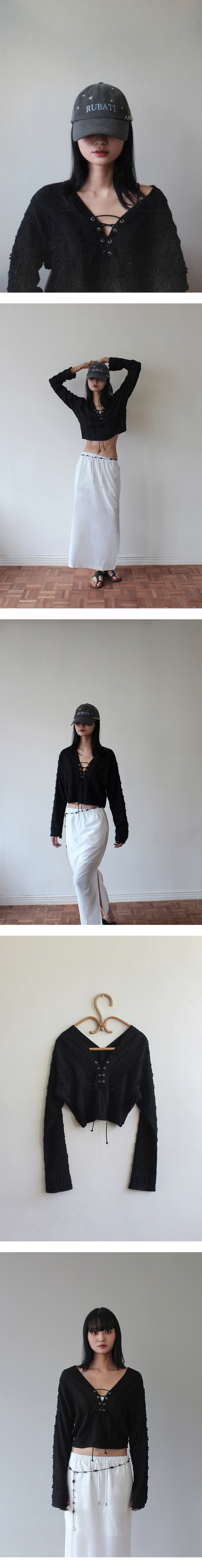 루바티 프릴 레이스 아일렛 탑 블랙