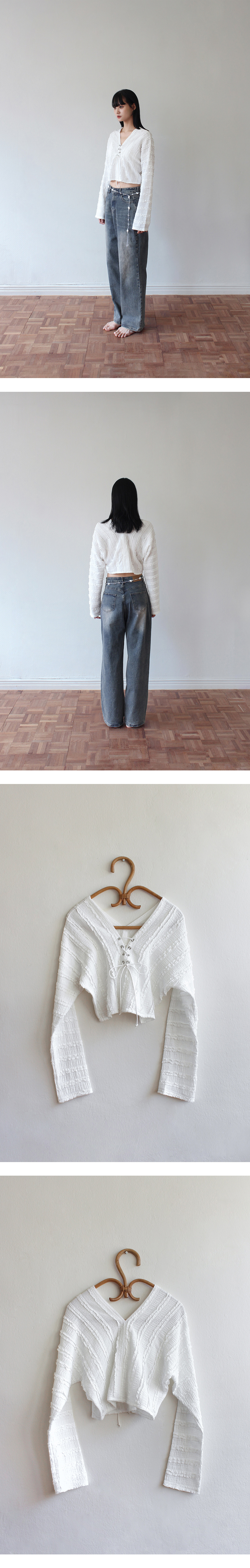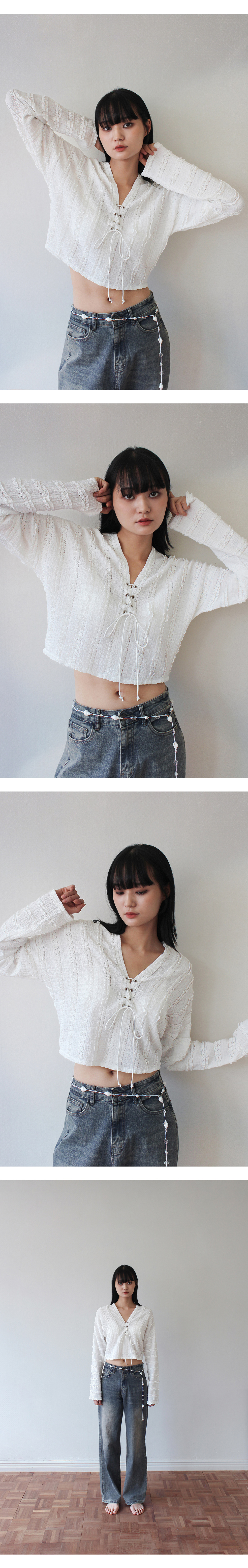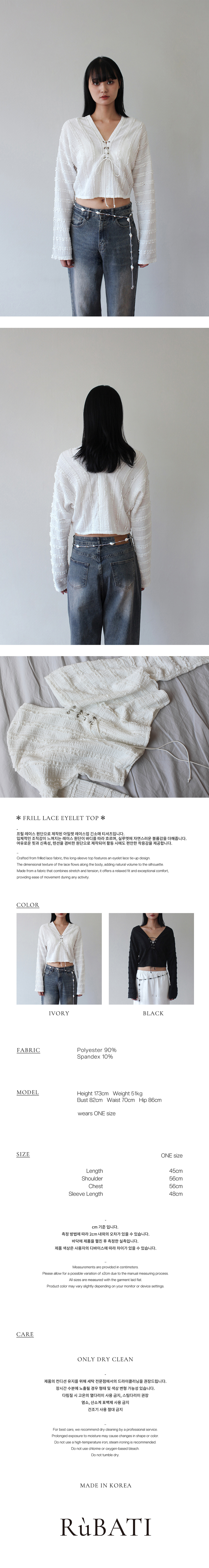 루바티 프릴 레이스 아일렛 탑 아이보리