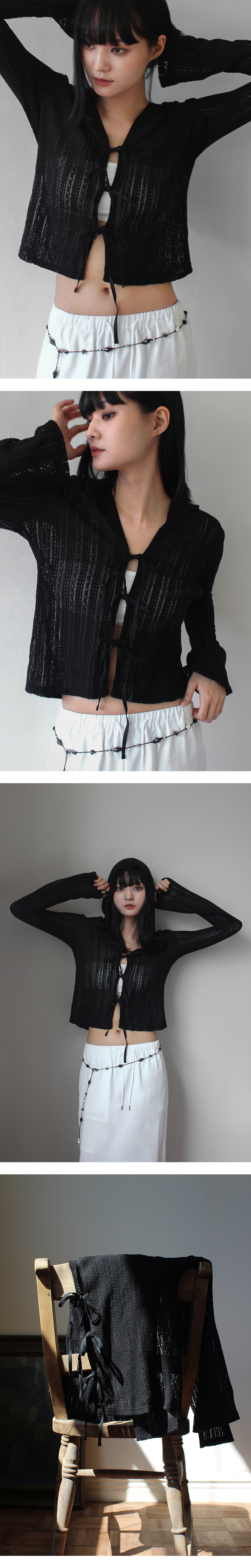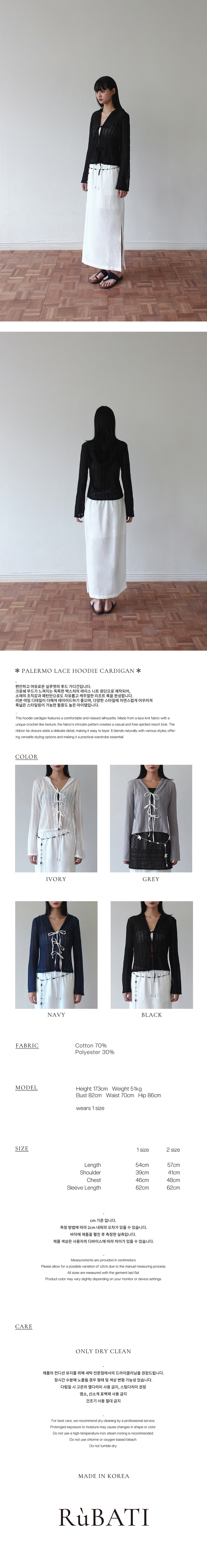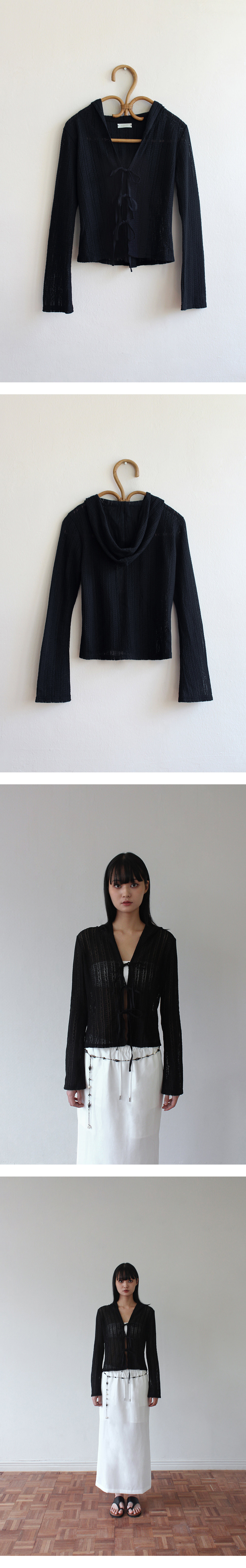 루바티 팔레르모 크로쉐 니트 레이스 후드 가디건 블랙