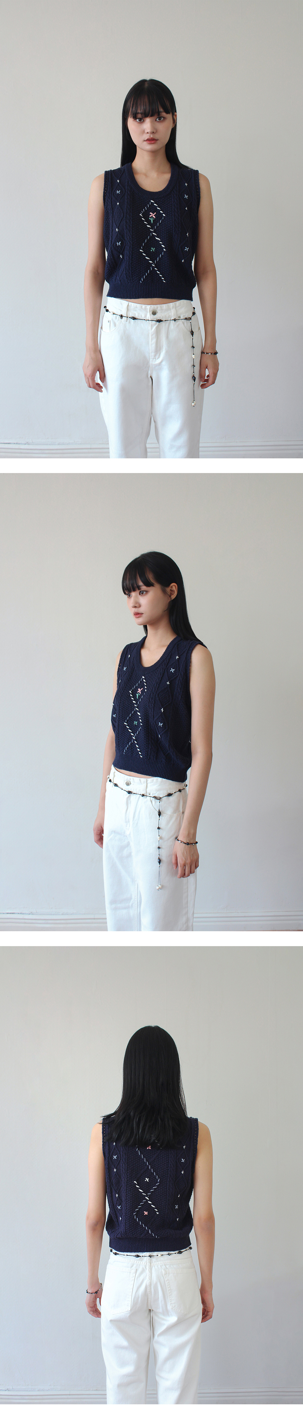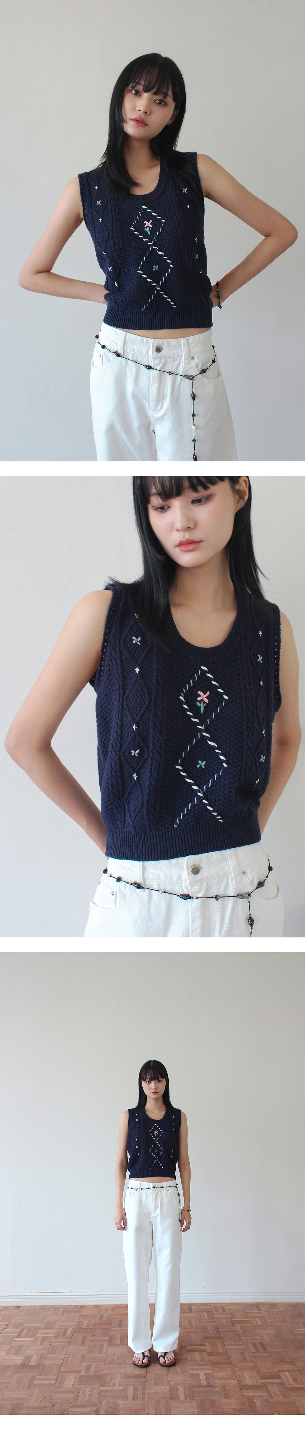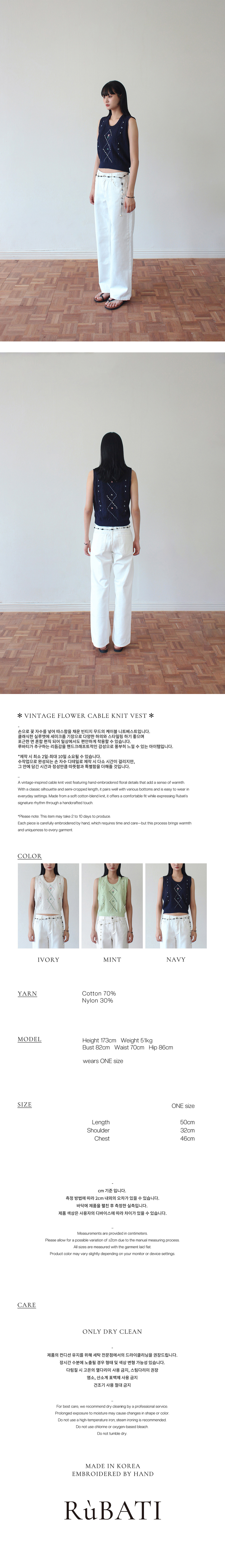 루바티 손자수 빈티지 플라워 니트 베스트 네이비