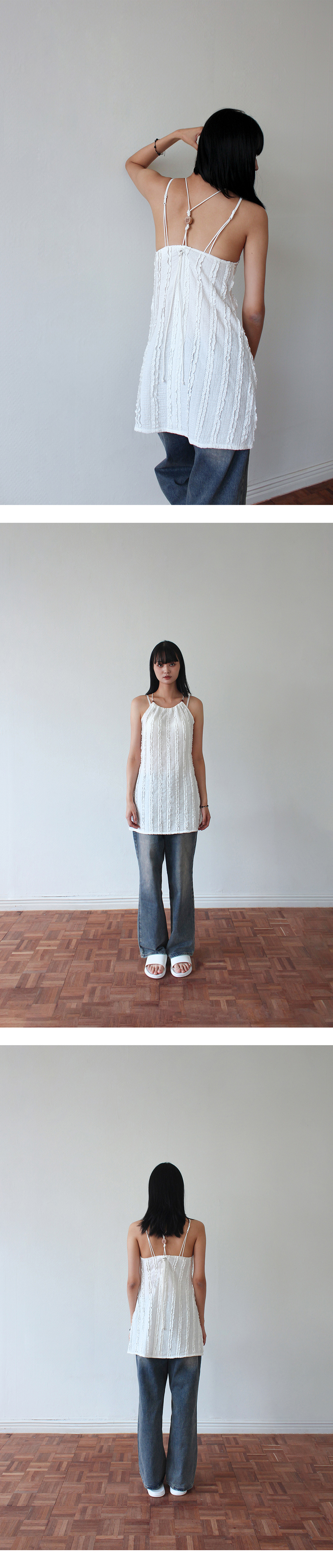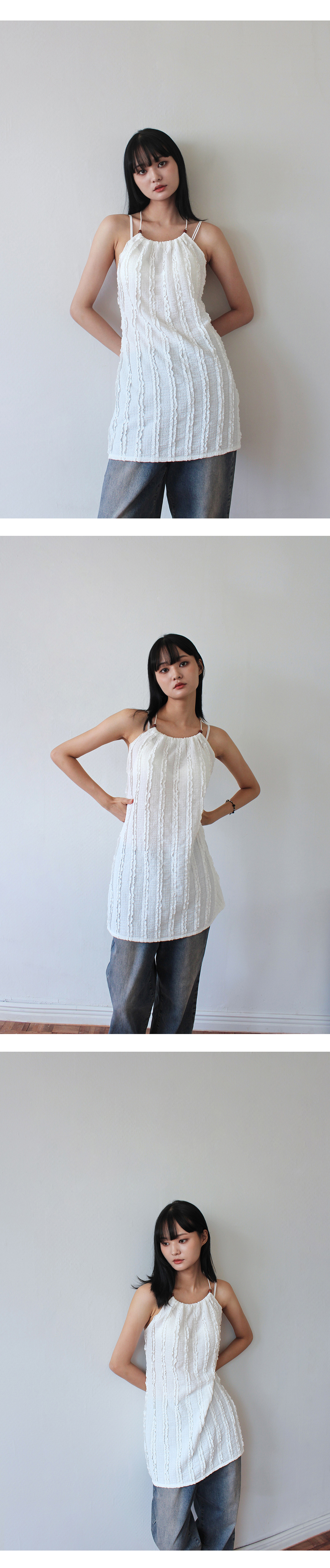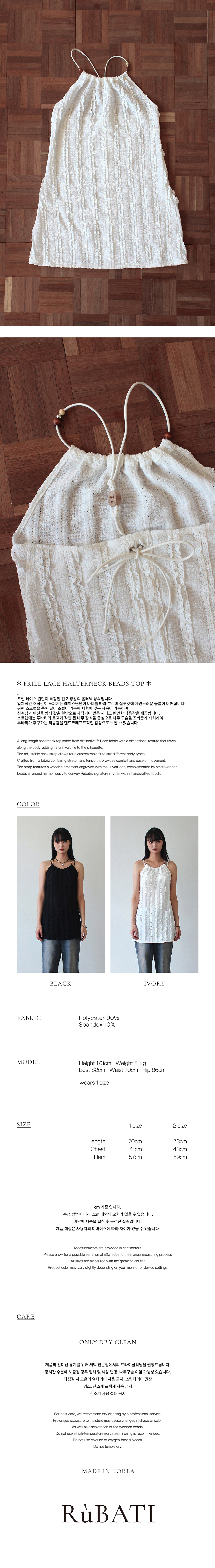 루바티 프릴 레이스 홀터넥 우든 비즈 탑 아이보리