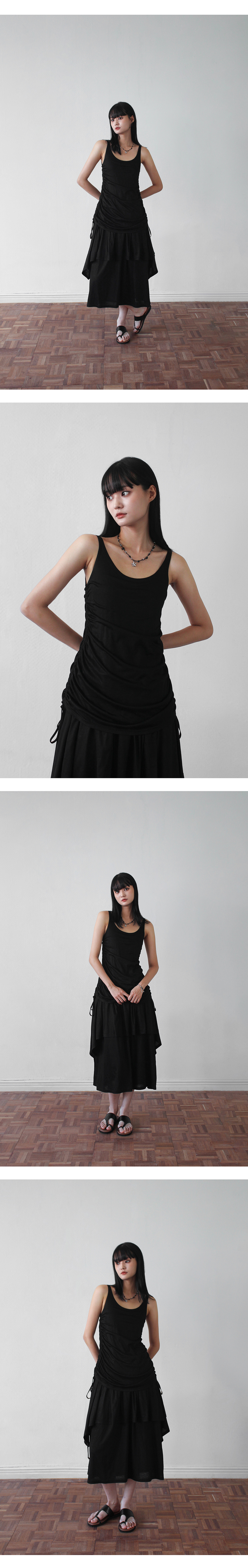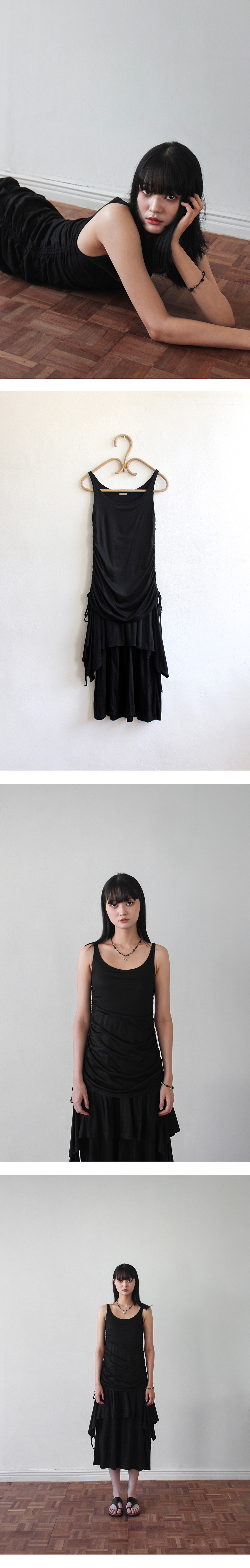 루바티 플레어 셔링 레이어드 드레스 블랙