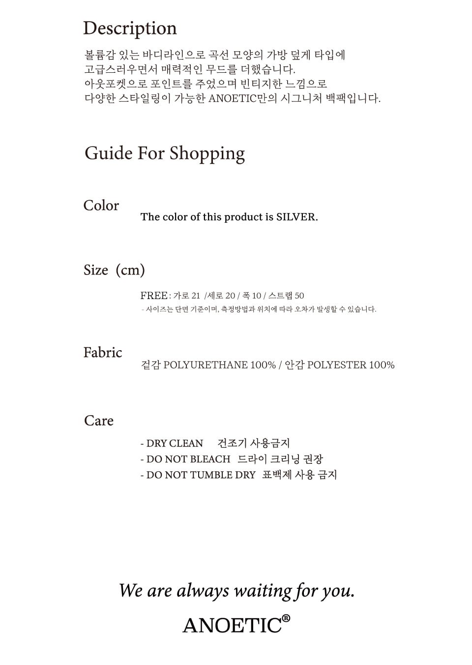 아노에틱 클래식 아웃포켓 백팩_실버