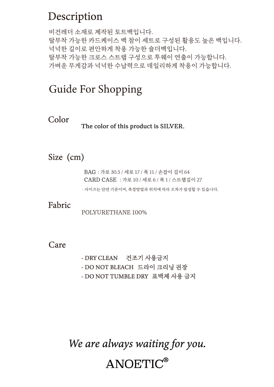 아노에틱 클래식 토트백 위드 카드케이스_실버