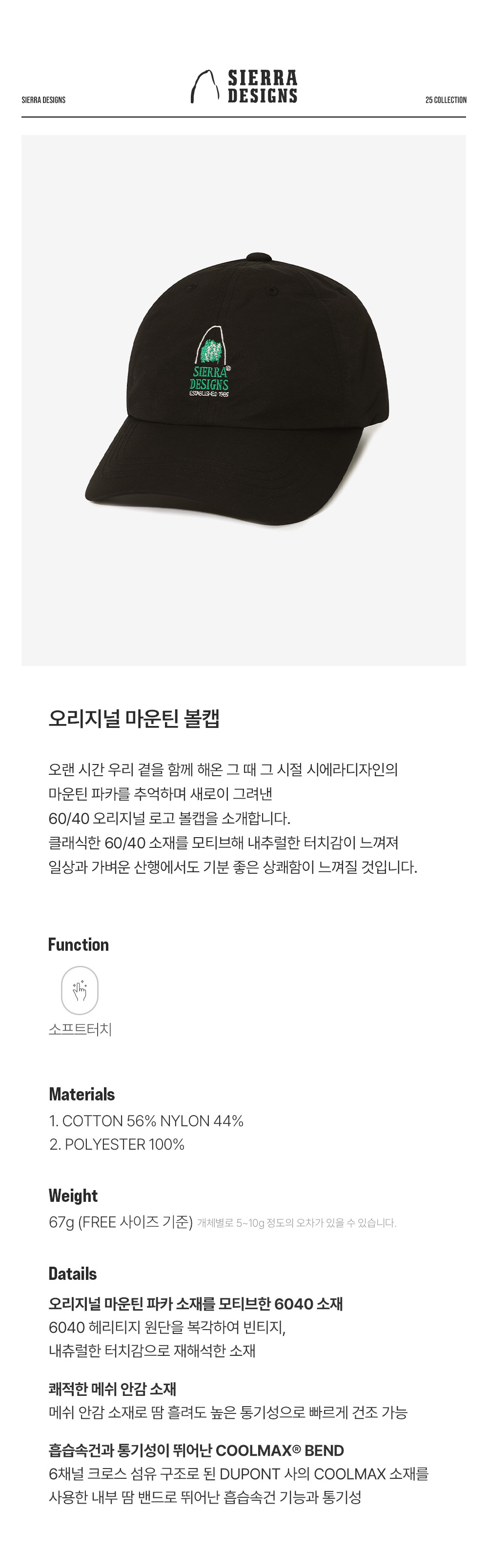 시에라디자인 오리지널 마운틴 볼캡 블랙