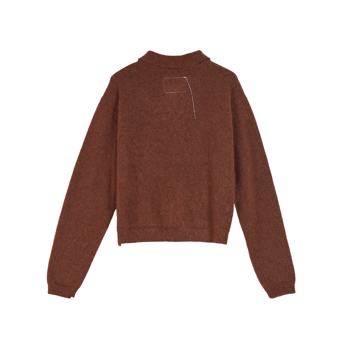 해체주의적인 실밥이 매력 포인트인 카미엘 포트젠스 헤어리 가디건 브라운입니다. - 알파카 니트 가디건 - 루즈 핏 실루엣 - 가슴 한쪽에 미니 포켓 디테일 - 7버튼 클로저 - 3게이지 니트, 불규칙 스티치 마감 - 혼 버튼 사용