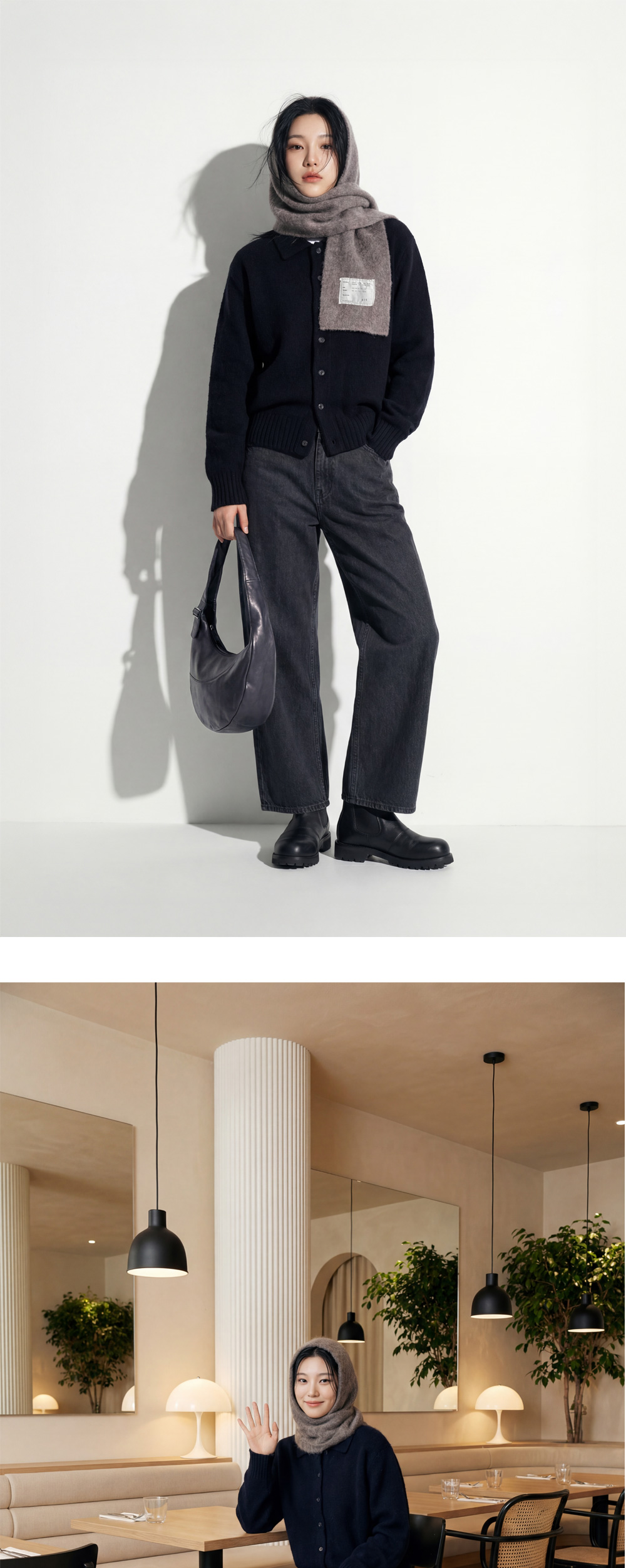 컷아웃 디테일이 매력적인 카미엘 포트젠스 헤어리 바라클라바 스카프 브라운입니다. - 3게이지 가디건 니트로 완성한 소프트 알파카 울 스카프 - 발라클라바 형태로 착용 가능한 후드 일체형 디자인 - 앞면 컷아웃 디테일과 러프한 마감 처리 ✧ AI로 제작한 콘텐츠가 포함되었습니다.