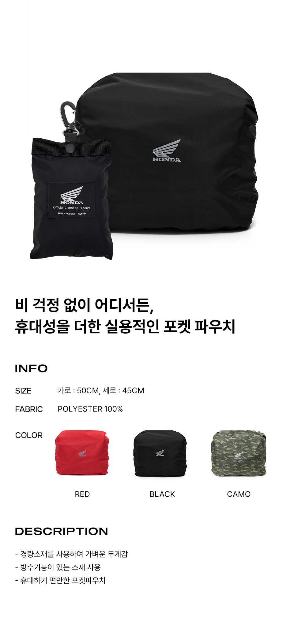 혼다 윙 로고 워터프루프 사이드 백 커버 블랙