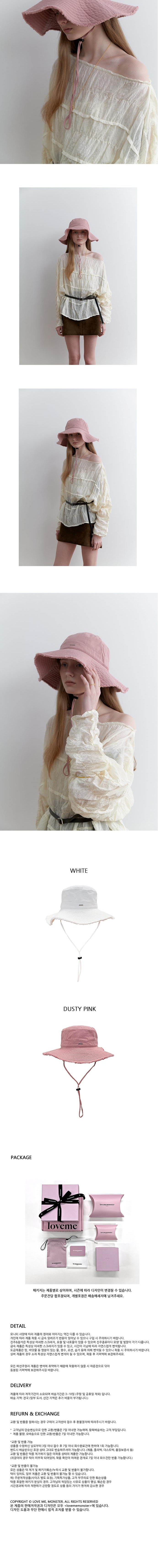 '코튼 소재의 '와일드 밸리 버킷햇' 입니다. 이름에서 느껴지는 것처럼 보다 러프한 디테일의 태슬 장식이 가미된 디자인입니다. 톡톡한 두께의 코튼 소재로 핏을 잡은 후 워싱을 돌려 부드러운 착용감을 살렸습니다. 넓고 큰 챙은 얼굴을 따라 자연스럽게 웨이브지며 착용 할 수록 더욱 멋진 핏을 선사합니다. 한 껏 꾸미지 않아도 멋스러운 아웃핏의 버킷햇으로 여행 가방에 단 하나만 챙기기 충분합니다. 와이드한 핏, 포터블한 소재로 휴대가 용이하며 도심에서나 휴양지에서의 모든 룩을 돋보이게 해줍니다. 또한 탈부착이 가능한 스트랩은 착용 시 바람에 날아가지 않게 잘 고정해주며 좀 더 스타일리쉬하게 연출해줍니다. 모자 안쪽에있는 히든 스트랩으로 머리 크기에 맞춰 사이즈 조절이 가능합니다. 앞면에 'lovememonster' 금속 로고참으로 포인를 주었습니다.