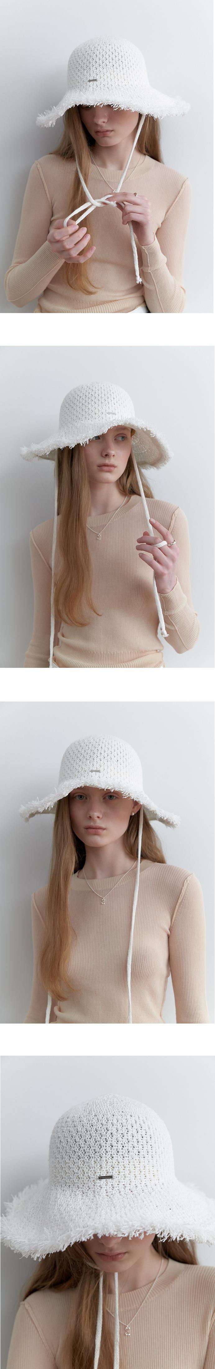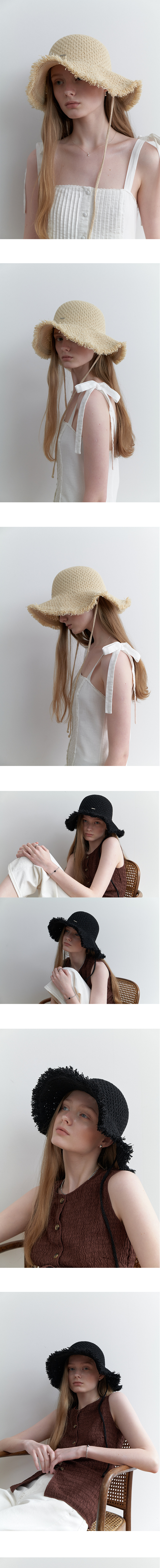 러프한 태슬 챙이 매력적인 와이드 버킷햇입니다. 격자 무늬로 직조한 헤드 부분과 넓은 챙, 태슬 장식을 더해 페미니하면서도 시크한 디자인입니다. 내추럴한 소재의 밀짚 모자 느낌을 구현하기 위해 페이퍼사를 믹스하여 제작했습니다. 촘촘한 짜임새로 탄탄하며 페이퍼 믹스 소재로 가벼운 피팅감을 느낄 수 있습니다. 넓은 챙은 여름철의 강한 자외선을 차단해주며 동시에 통풍이 탁월합니다. 챙 끝에는 와이어를 넣어 얼굴형에 맞춰 원하는 핏으로 변형할 수 있습니다. 양 옆의 긴 스트랩은 착용 시 바람에 날아가지 않게 잘 고정해주며 좀 더 스타일리쉬하게 연출해줍니다. 와이드한 핏, 포터블한 소재로 휴대가 용이하며 도심에서나 휴양지에서의 모든 룩을 돋보이게 해줍니다. 모자 안쪽에있는 히든 스트랩으로 머리 크기에 맞춰 사이즈 조절이 가능합니다. 컬러는 화이트, 라이트 베이지, 블랙 총 3가지가 있습니다. * 페이퍼 소재의 특성상 세탁은 비권장하며 물에 젖은 경우 서늘한 그늘에서 말려주시기 바랍니다.
