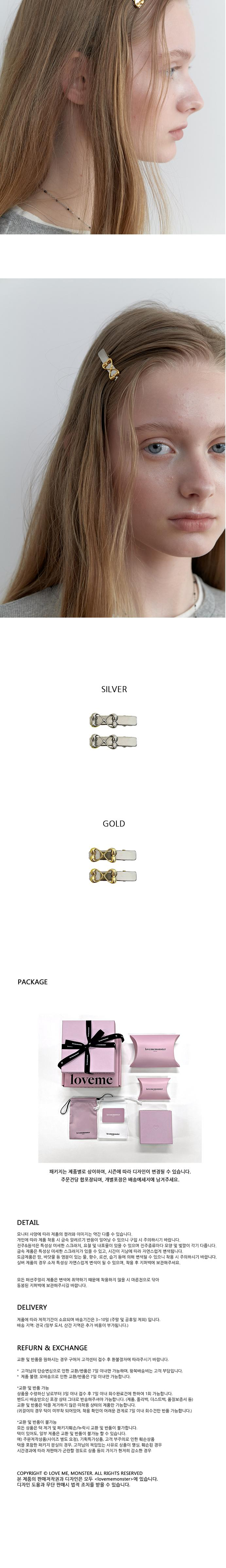 러브미몬스터의 심볼 '플라이 몬트' 미니 헤어핀입니다. 볼드함과 우아한 곡선이 어우러진 '플라이 몬트' 참과 메탈의 시크함을 살린 디자인입니다. 올망 졸망 비슷한 크기의 미니 집게핀과 참을 매치하여 귀엽기까지도 합니다. 루틴처럼 흘러가는 착장에 전환점이 되어줄 수 있는 메탈 헤어핀입니다. 참 색상에 따라 실버, 골드 총 2가지 컬러가 있습니다. *헤어 악세사리는 시착은 가능하나 택 제거후 착용한 흔적(냄새, 먼지, 스크래치 등)으로 인해 재판매가 불가한 경우에는 교환 및 환불이 불가할 수 있으니 신중한 구매 부탁드립니다.