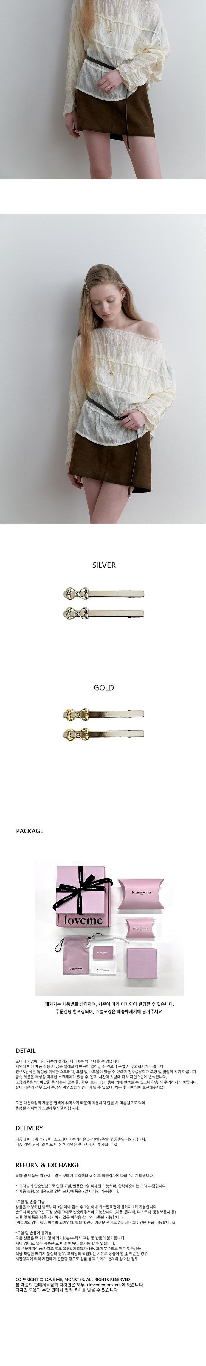 러브미몬스터의 심볼 '플라이 몬트' 슬림 헤어핀입니다. 볼드함과 우아한 곡선이 어우러진 '플라이 몬트' 참과 메탈의 시크함을 살린 디자인입니다. 슬림한 집게핀 형태로 착용이 편리하며 다양한 스타일링이 가능합니다. 모델처럼 앞머리에 포인트를 주거나 올림머리에 꽂아 사용해보세요. 루틴처럼 흘러가는 착장에 전환점이 되어줄 수 있는 메탈 헤어핀입니다. 참 색상에 따라 실버, 골드 총 2가지 컬러가 있습니다. *헤어 악세사리는 시착은 가능하나 택 제거후 착용한 흔적(냄새, 먼지, 스크래치 등)으로 인해 재판매가 불가한 경우에는 교환 및 환불이 불가할 수 있으니 신중한 구매 부탁드립니다.